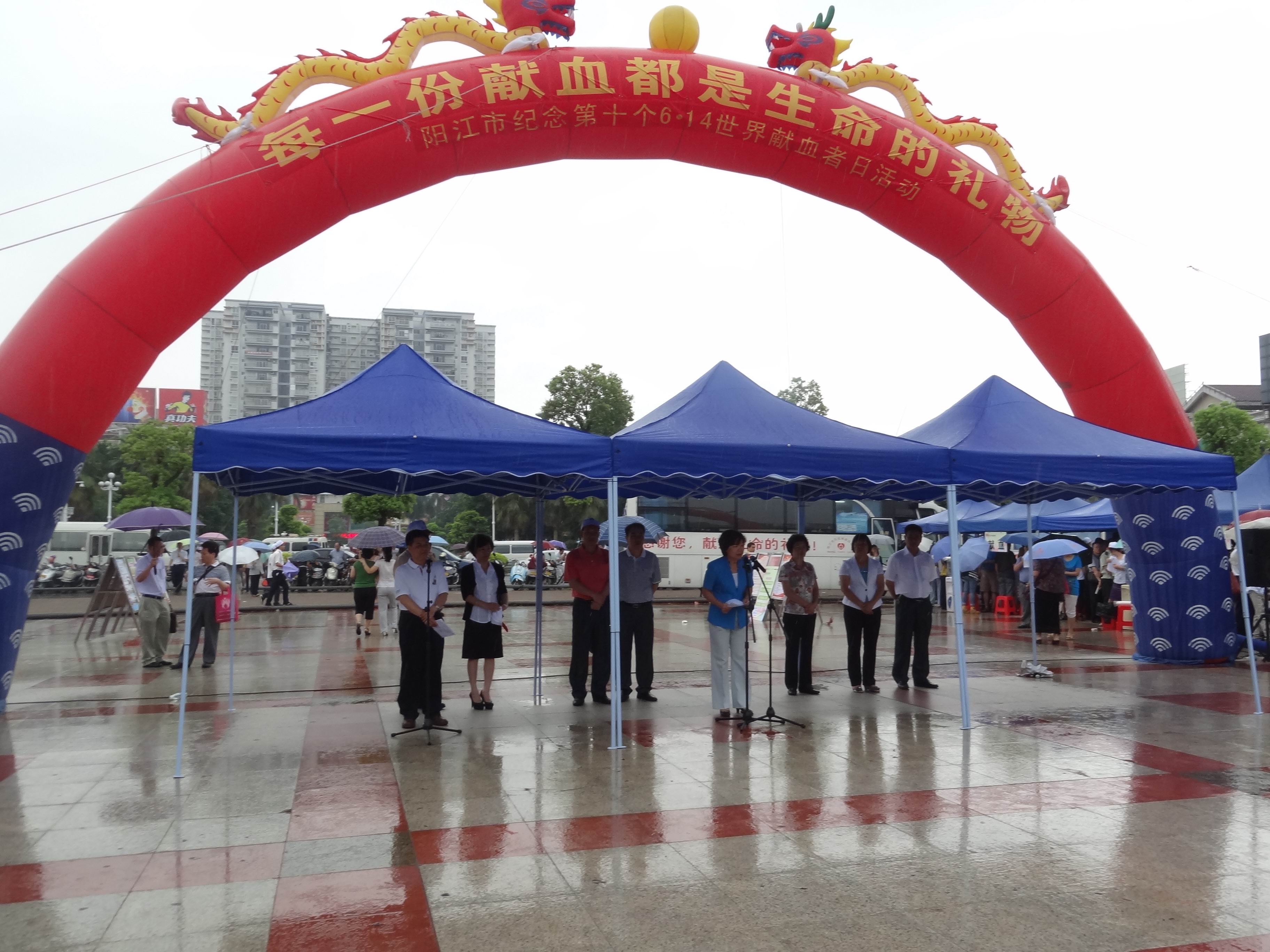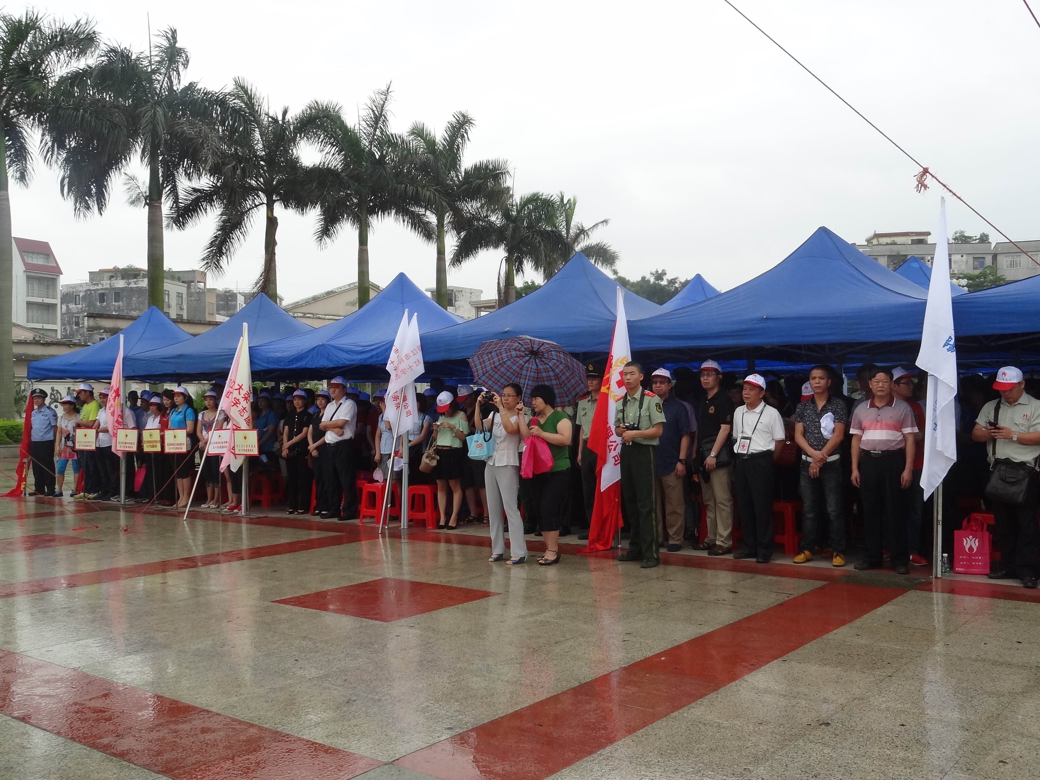 昨日是第十个“世界献血者日”,一场以“每一份献血都是生命的礼物”为主题的宣传活动在市区人民广场举行。尽管天空飘着小雨,我会的粤宝、鸿丰、伟艺、明轩、祥业等接近二十多家企业志愿服务队参加了该活动的启动仪式并冒雨加入了义务献血的队伍。