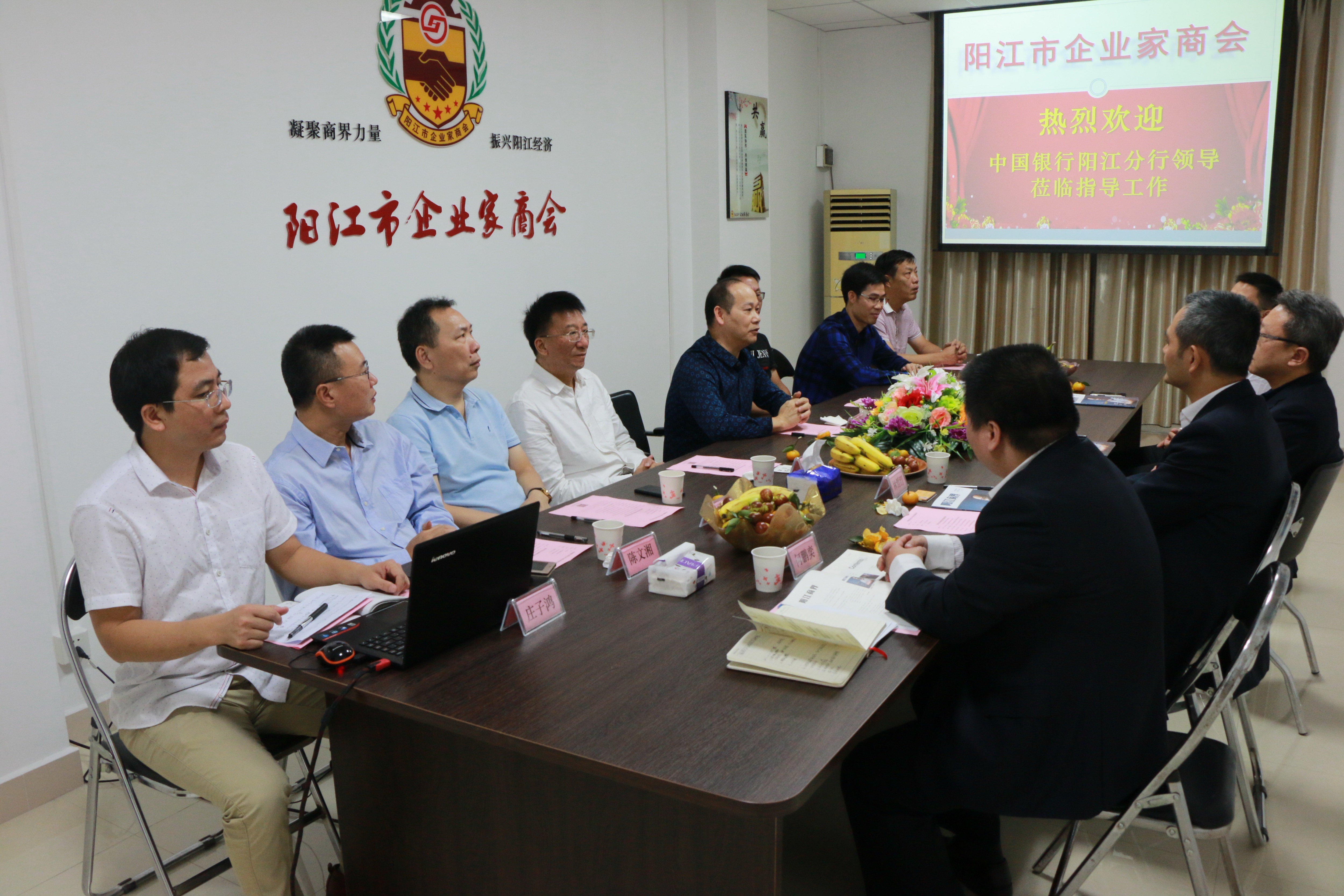 为共同推进我市民营经济资金融通,10月31日上午,中国银行阳江分行行长李俊涛、副行长林哲汀、中小企业中心总经理何鹏奕、城南片区行行长吴贵等拜访阳江市企业家商会,举办银企合作恳谈会,进一步积极深入探索合作领域,创新民营企业金融服务。