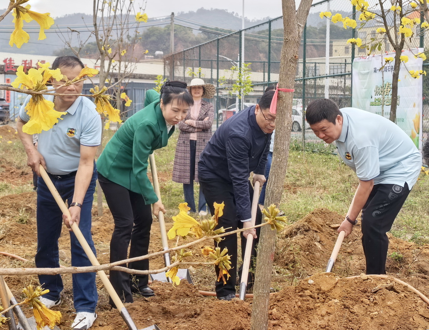 植树现场,大家干劲十足、配合默契,挥锄挖坑、扶树培土、浇水灌溉,认真完成每一道工序,现场一派热火朝天的劳动场面。杨骁婷常委与市企业家商会60多名企业家代表合力种下黄花风铃等一批花木,以实际行动为绿美阳江生态建设增绿添绿。杨骁婷指出,要充分利用春季植树造林有利时机,广泛发动社会各界开展植树造林,持续做好绿化管护工作,因地制宜发展绿色经济、林下经济等新业态,让城乡环境更美丽宜居。 参加活动的还有市委宣传部副部长冯先河,市委宣传部有关科室负责人,江城区政府有关领导,江城区妇联,城东街道等单位。市企业家商会相关负责人表示,春季正是植树的好时节,参与植树公益活动,充分发扬企业家精神,让乡村建设增添绿意,让漠阳大地天更蓝、山更绿、水更清,为建设绿美阳江贡献商会力量。